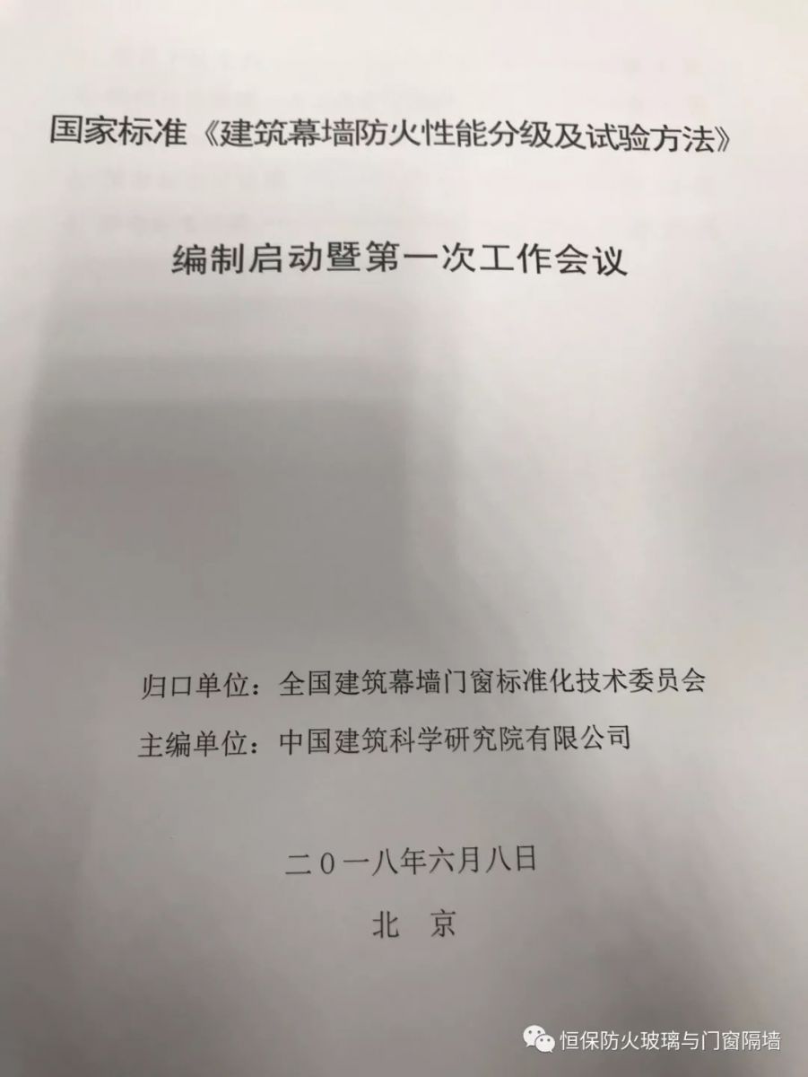全國建筑幕墻門窗標(biāo)準(zhǔn)化技術(shù)委員會秘書處劉會濤高級工程師代表標(biāo)委員會宣讀編制組名單,標(biāo)準(zhǔn)編制啟動會圓滿結(jié)束。鶴山恒保陳沃林總經(jīng)理也應(yīng)邀參加了這次的國家標(biāo)準(zhǔn)編制。