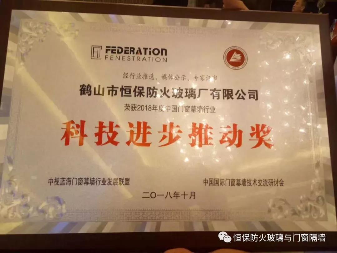 鶴山恒保公司在此次交流研討會中,獲大會專家評審并頒發(fā)2018年度中國門窗幕墻行業(yè)“科技進(jìn)步推動獎”。